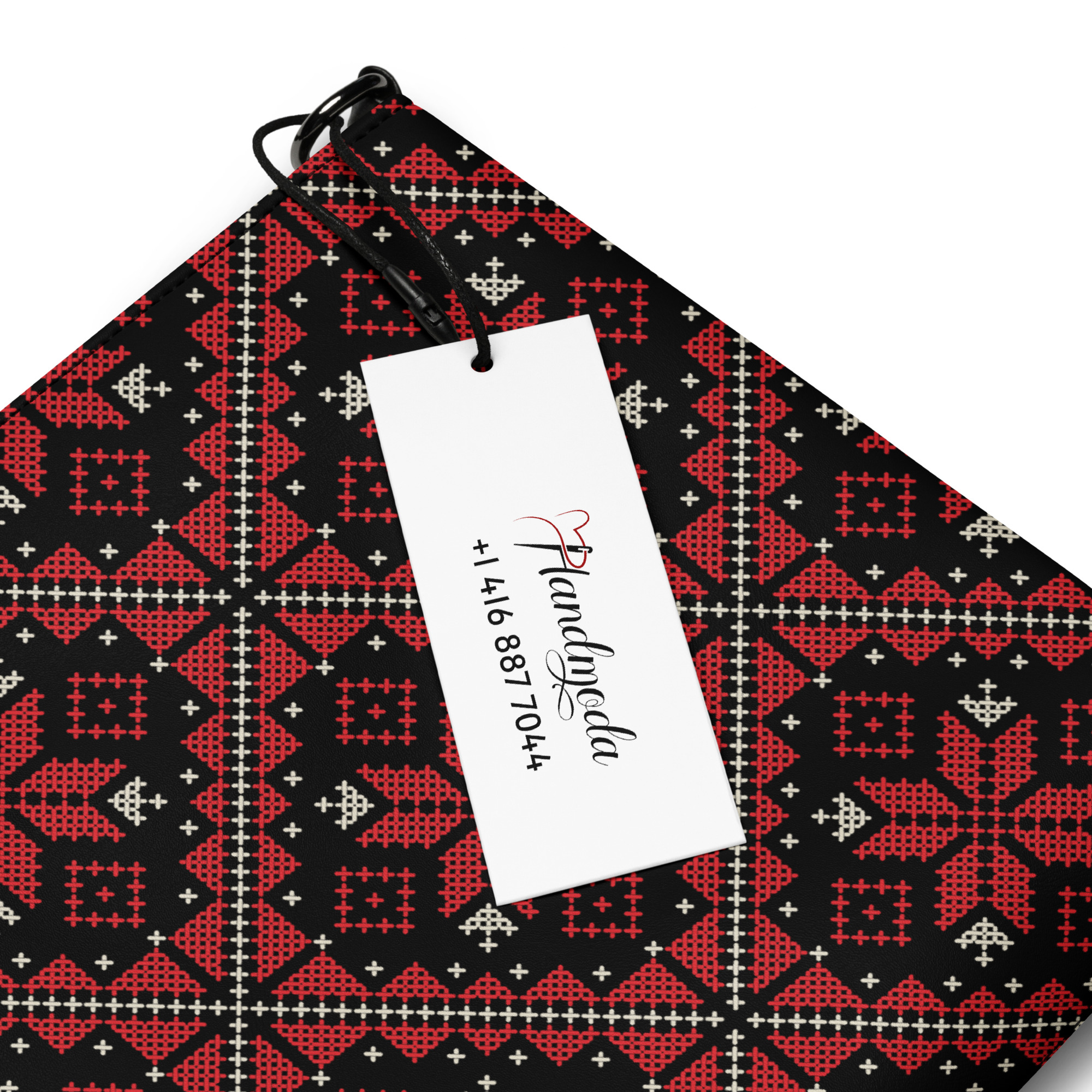 Check this unique custom crossbody bag with middle eastern Tatreez embroidery printed vivid pattern.