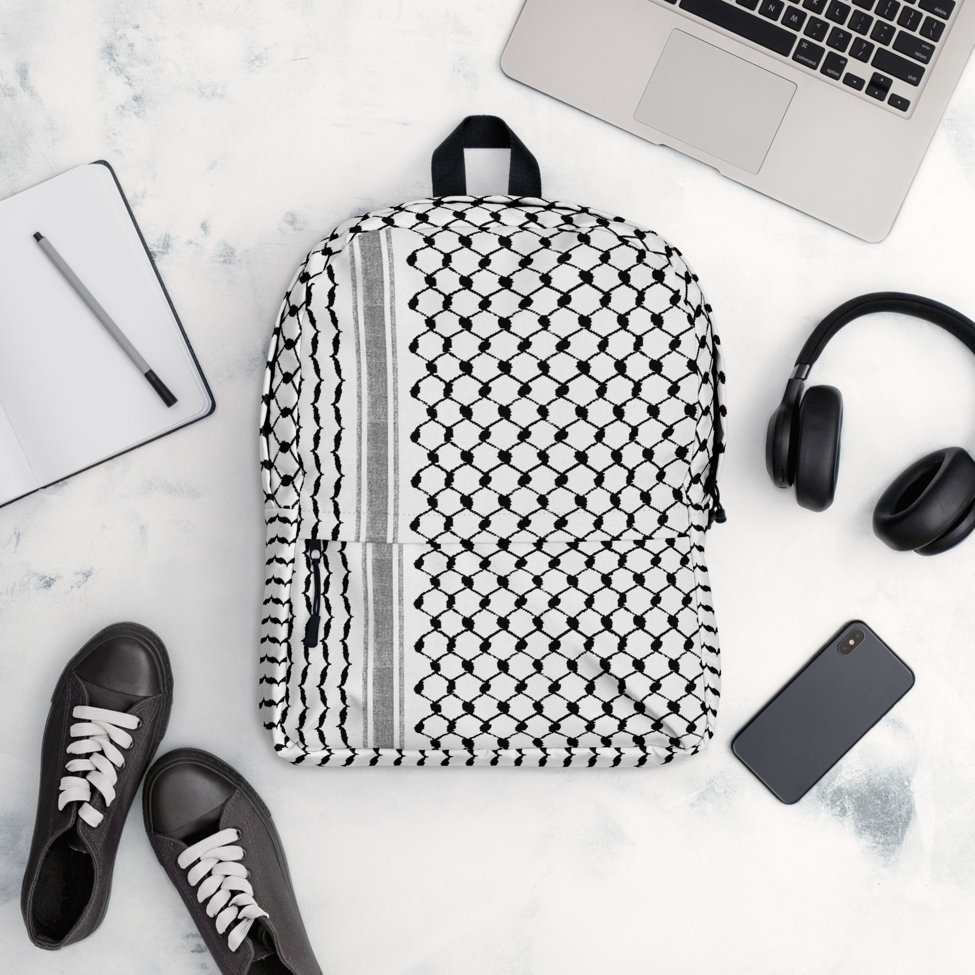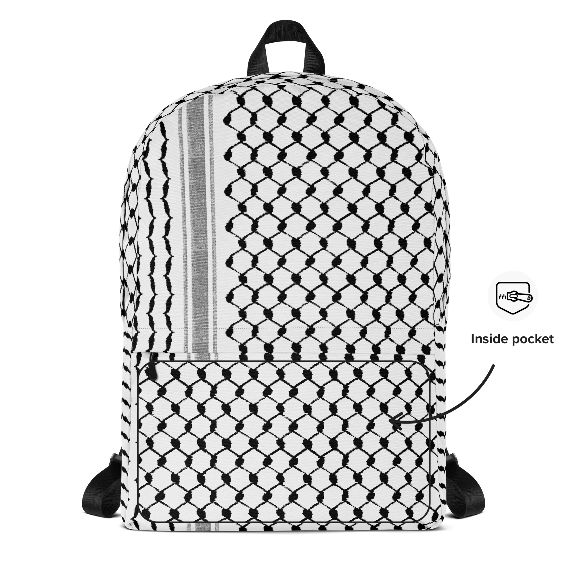 This medium size personalised backpack with Palestinian Kufiya pattern is just what you need for daily use or sports activities! The pockets (including one for your laptop) give plenty of room for all your necessities, while the water-resistant material will protect them from the weather.